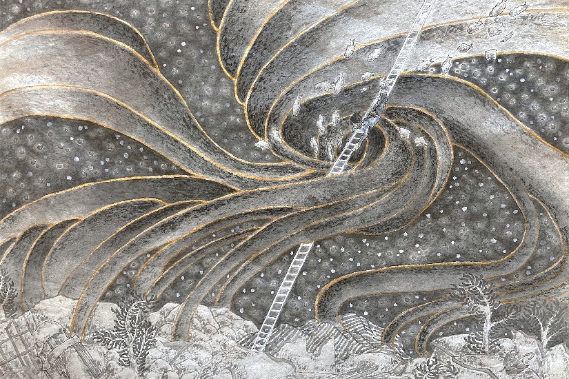 風漸熱衷於以寫實風格描繪事物的重複性及其變化,經常以精細的油畫技法繪製植物葉子和磚牆。他用心經營構圖,使有機形態的植物與冰冷的磚牆形成強烈的對比。風漸在搜索 2022 過程中,發現全球核武裁軍的議題不是出現。如果說核廢料代表死亡,那麼他筆下的植物就是最重要的生命象徵。