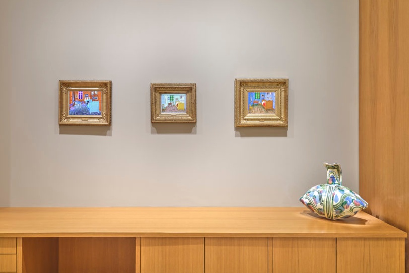 其他焦點作品還包括出⾃倪有⿂的三件《藝術家臥室》(2021年作),通過致敬梵⾼及探索臥室中的 常⾒擺設探索⽣命的循環往復,該作品隨後亦將於藝術家在內地的重要美術館個展中展出。