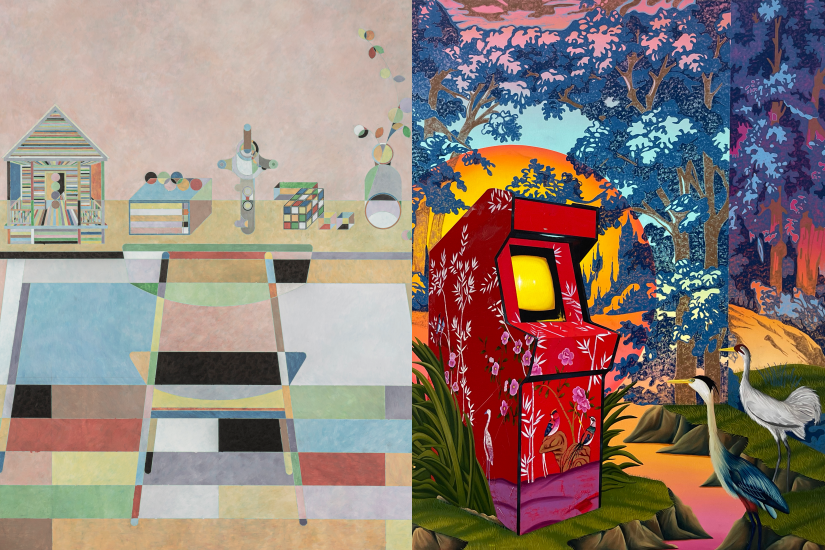 駐杭州的藝術家彭劍將其具有古典風格並帶有棱角的界畫形式中所表現出的呆板感覺引入了一個新 的方向,展示出只有掌握技巧才能帶來的靈活性。Stephen Thorpe 的作品以鳥作主題,色彩飽和度高,展示了詩意的想像世界。