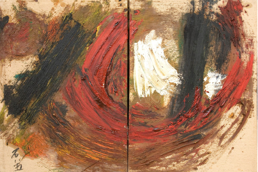 中國抽象藝術家朱金石以重色厚塗的“厚繪畫”風格而為人熟知,他的早期抽象繪畫曾受到現代主義的影響,展出的作品《太陽》創作於1985年,融合了抽象表現主義與中國書法的特點。《前天十三陵》來自藝術家最新系列作品,一方面延續了重色厚塗的方法,將不加稀釋的丙烯顏料直接塗抹於畫面,另一方面,對色彩、筆觸、層次和方向的控制則呈現出一種“反重力”的可能性。