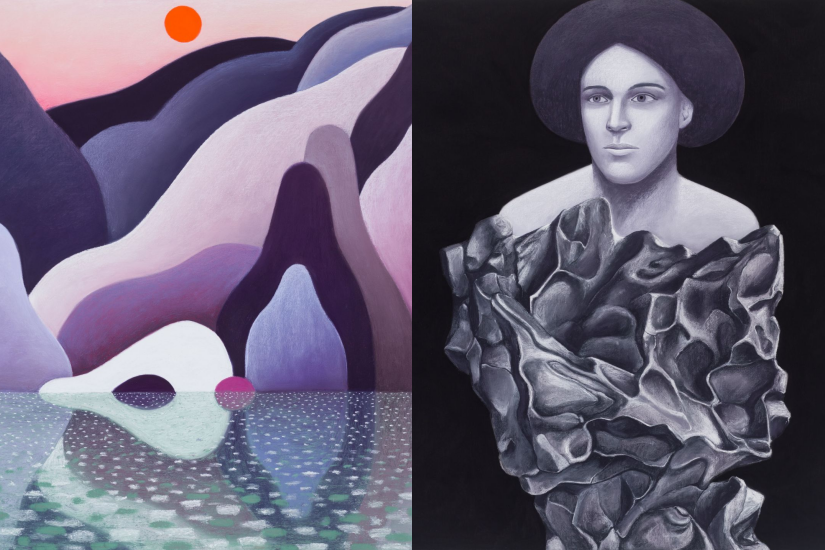 除了「紅色森林」之外,Party 的全新肖像畫,描繪了一系列身披外太空隕石的人物,令人聯想到金屬元素。石間的大量裂縫代表著所受的侵蝕,與承載著石頭的人類形成鮮明對比。而在另一個「水中倒影」系列中,畫中的雲、水與倒影都像徵著一種永恆,或是時間的不斷流逝。