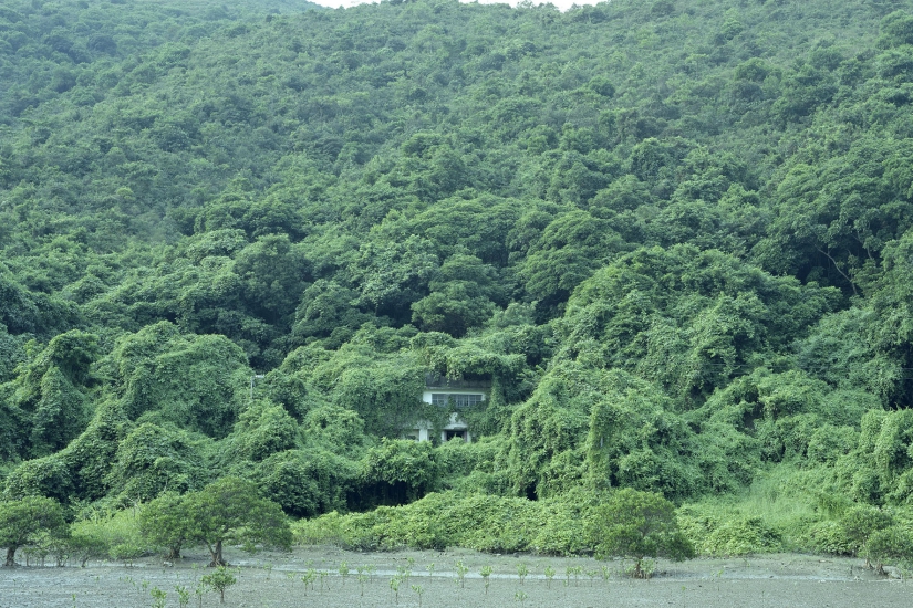 劉智聰以燈箱形式展出綠林的攝影照片,他的作品捕捉大自然中的廢墟,見證了過去的時間和生命的痕跡,生動地展示了大自然的再生力量。