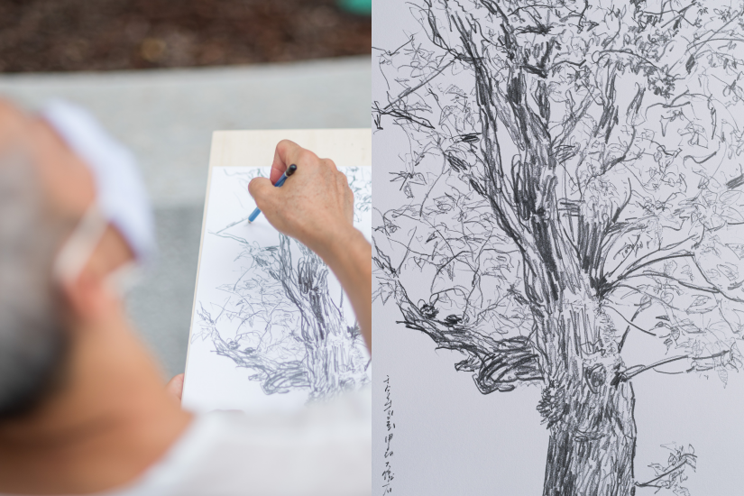 藝術家鄭波為大館內的十棵樹寫生,與它們進行默念互動與體驗,從 5 時 40 分日出起,至 7 時 10 分日落止,逐一為它們畫下肖像。本展覽中陳列出十張作品為當日從早到晚、順時的精選畫作。