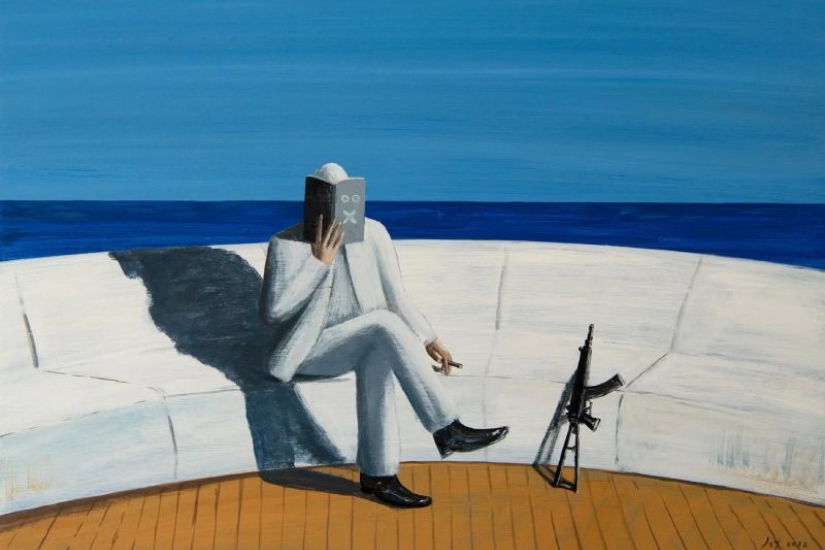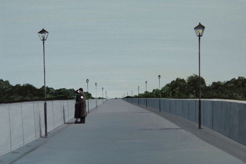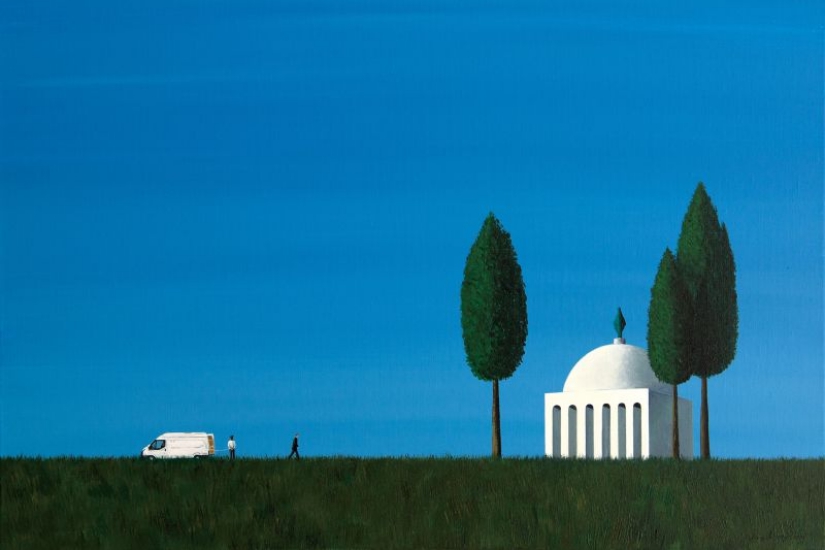 看著中國藝術家荊智勇的畫作,那廣闊空間或地域所散發的寂寥感,讓人不自覺地聯想到美國畫家 Edward Hopper (1882–1967) 的經典創作。Hopper 繪畫了一些美國藝術史中最歷久不衰的流行圖像,畫面中有關城市的孤立感和不確定感,牽動每個都市人的心,而荊智勇作品中的氛圍,亦與其有著異曲同工之妙。