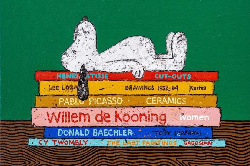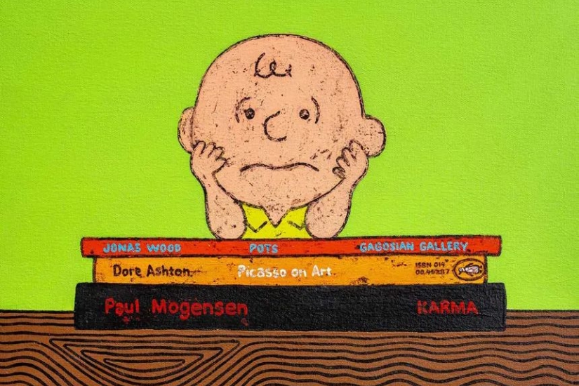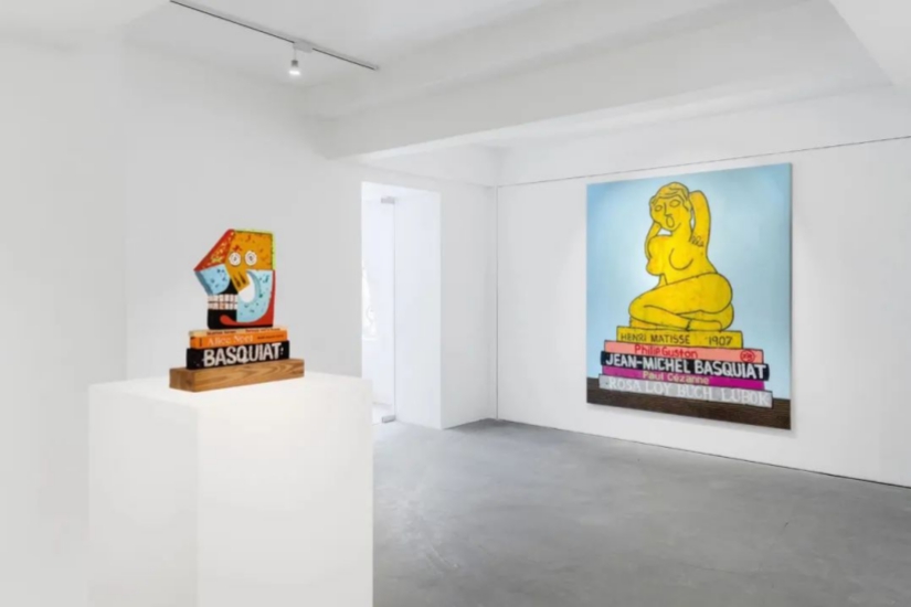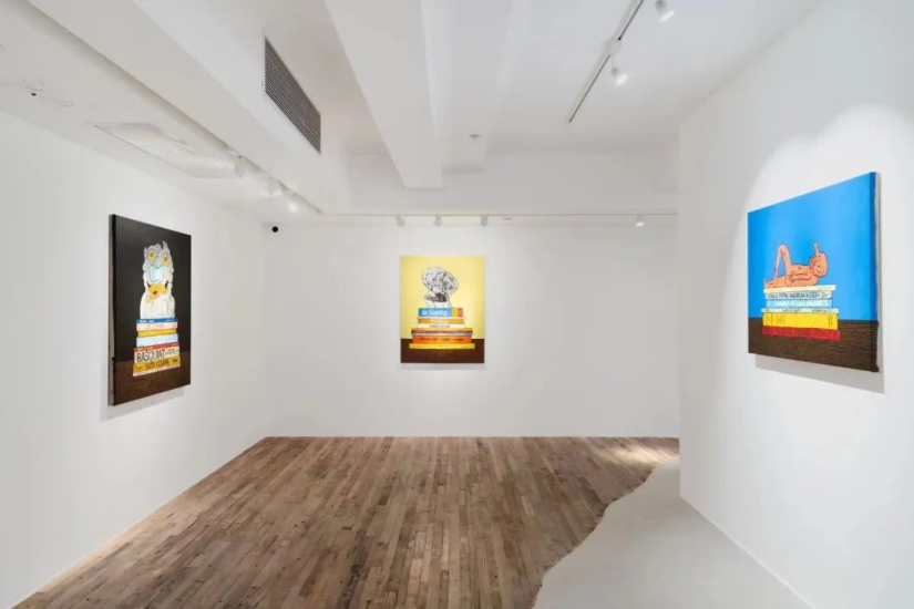 今次展覽軸心就是重新演繹一些藝術史中的經典題材,從歷史到當代, Edelhuber 將當代藝術家與 Pablo Picasso 和 Cy Twombly 等經典藝術家的作品內容相融合,將一些面露疲倦的人或動畫角色放置在著名藝術書籍上,構成突兀又趣怪的畫面。