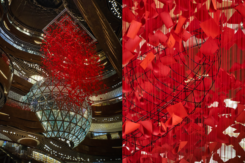 另一件相當矚目的作品,就是由日本大阪藝術家塩田千春打造長達 12 米的大型藝術裝置《 I hope…》。這件於疫情期間創作的大型藝術裝置作品,由鋼船裝置及大量紅繩與 5,000 封由全球各地民眾手寫的願望信組成,小船猶如於願望海洋中航行。塩田千春希望透過作品,提醒參觀者在面對不確定狀況時依然要懷抱希望。