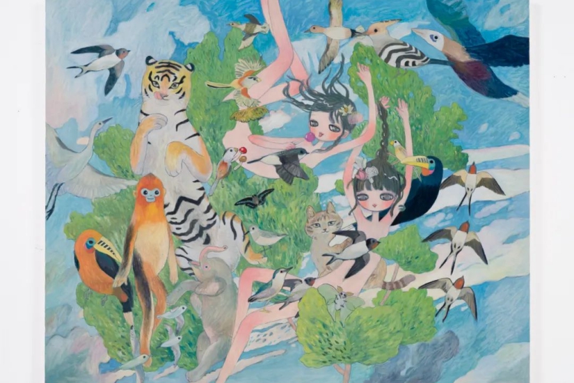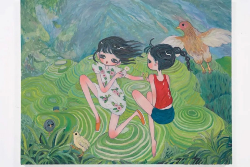《姐妹遊桂林》 2022. 布面油畫. 91×116.7cm. ©2022 Aya Takano/Kaikai Kiki Co., Ltd. All Rights Reserved. 圖片提供:藝術家與貝浩登