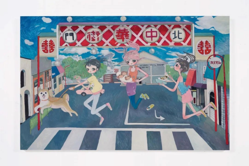 《新年記憶,日本中國城》 2022. 布面油畫. 97×130.3cm. ©2022 Aya Takano/Kaikai Kiki Co., Ltd. All Rights Reserved. 圖片提供:藝術家與貝浩登