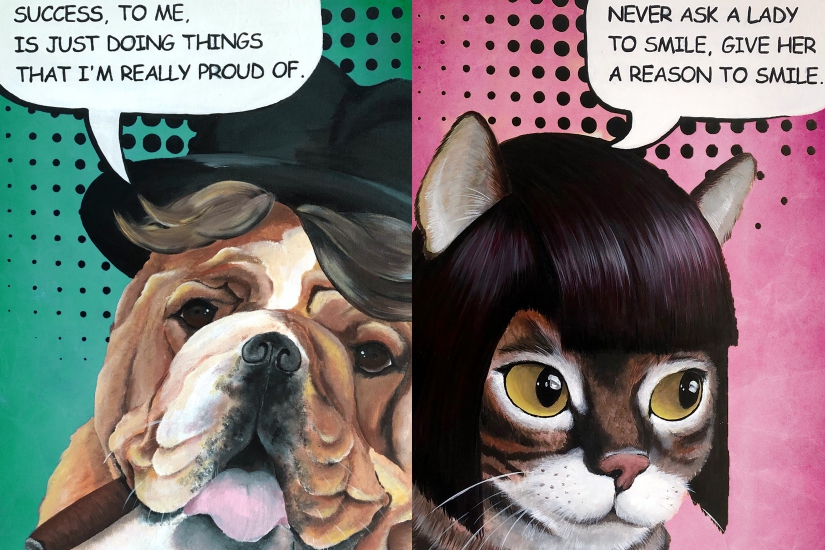 香港畫家及插畫家 LeonLollipop(黎里昂) 是一位動物肖像大師,因創作壁畫 “Gloomie the cat with cheeks” 而聞名。今次展覽帶來一系列趣緻貓咪數碼作品,生動的表情配合可愛的裝扮,令人看到都不禁會心微笑。