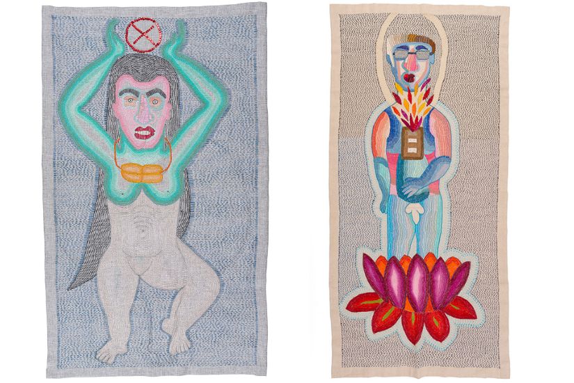 左:Paloma Castillo《神》106 × 57cm 亞麻布棉線手工刺繡 2021