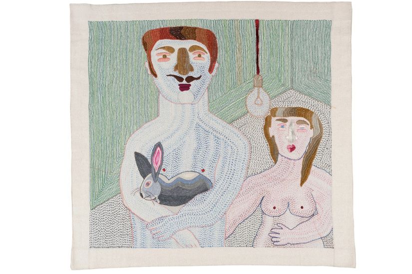 右:Paloma Castillo《肌肉先生》82.5 × 57cm 棉布棉線手工刺繡 2019