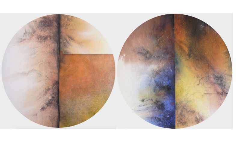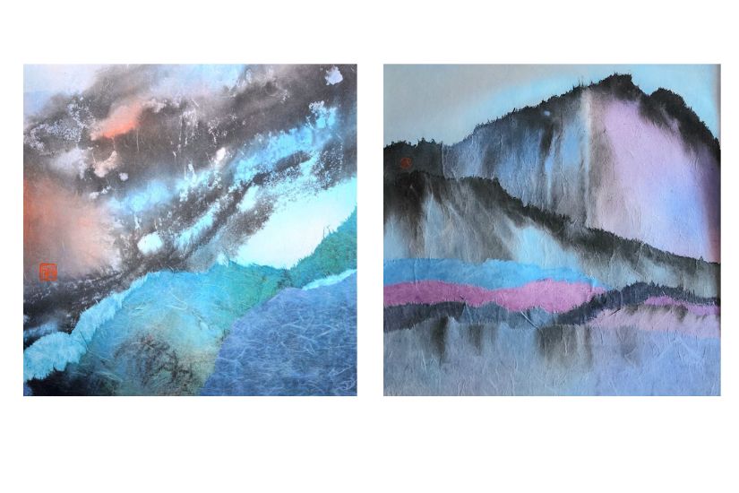 右:《永恆》2022 53x53CM 水墨設色拼貼