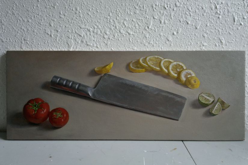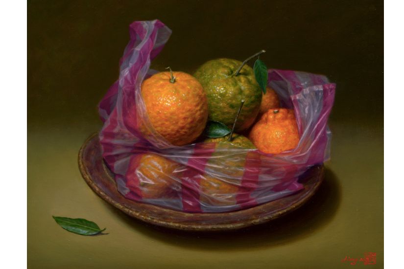藝術家梁晉嘉的作品運用古典油畫寫實技法表現生活飲食與水果。畫作中的食物無論放置在容器或塑膠袋裡裏,都展示了生活上的隨興。透過藝術家精心構圖,畫面凸顯出藝術家在構圖及光影細節上的巧思,以及其高超的寫實技巧,讓作品遠觀幾可亂真。
