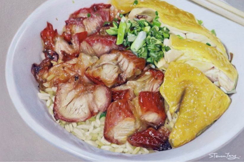 藝術家鄧梓俊利用木顏色媒材畫出一系列大家熟悉的港式本土經典美食,如《乾炒牛河》、《西多士》等等。藝術家筆觸細膩,一筆一畫讓作品栩栩如生,構圖參照「相機先食」的打卡日常,紀錄茶餐廳常見的食物,讓觀眾有機會重新欣賞港式快餐的美味和珍貴。