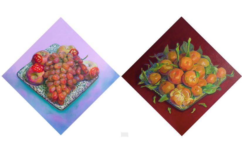 藝術家歐陽國健作品常於寫實靜物後搭配想像畫面或景色。展出作品中的水果以風景背景作為襯托,使作品在寫實中又帶有一絲夢幻和詩意。棱形的作品《四季平安》模仿農曆新年揮春的形狀,用食物本身代替文字,寄語祝福的寓意。畫面結合東方傳統價值及西方油畫技術,展現一個當代的生活常態。