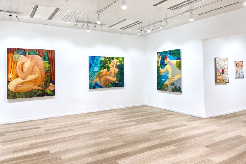 藝術家專注於當下,誠然繪畫是一個讓王金博思考和消化訊息的過程。他的作品强調了色彩,而且細膩的刻畫了人物的輪廓。那些閃閃發光的質感至今一直貫穿在他的創作歷史當中,從以前描繪 的點點星光到如今璀璨的閃光,彷佛在不斷擴展着一個超凡脫俗的宇宙景象,而他在當中尋找到屬於自己的自在之地。