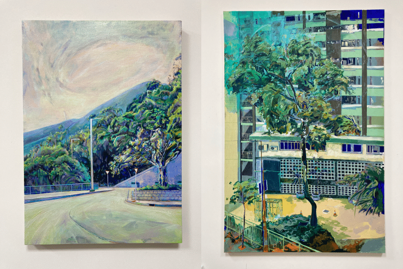 Alan 張家倫展出共 5 件壓克力布本作品,其中一張另以油粉彩作點綴。Alan 以當代藝術爲創作載體,化解抽象與具象之間的二元對峙,重新定義自己並審視其世界觀。他以時而細膩,時而粗獷的筆觸,描繪城市風貌與自然景觀,在他的筆觸下現實與想像之間的界綫越變模糊。Alan 的作品猶如一本形象化的生活札記,他運用絢爛的對比色,呈現出眼裏的社區和居所容貌。