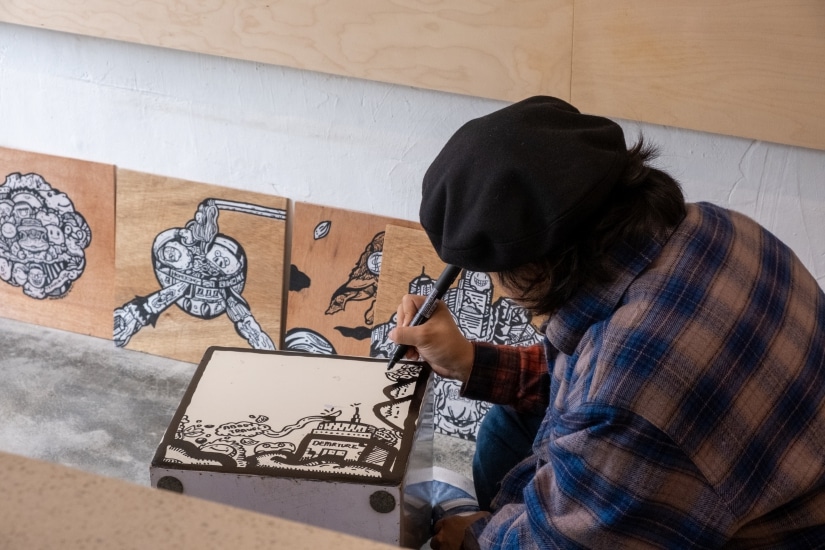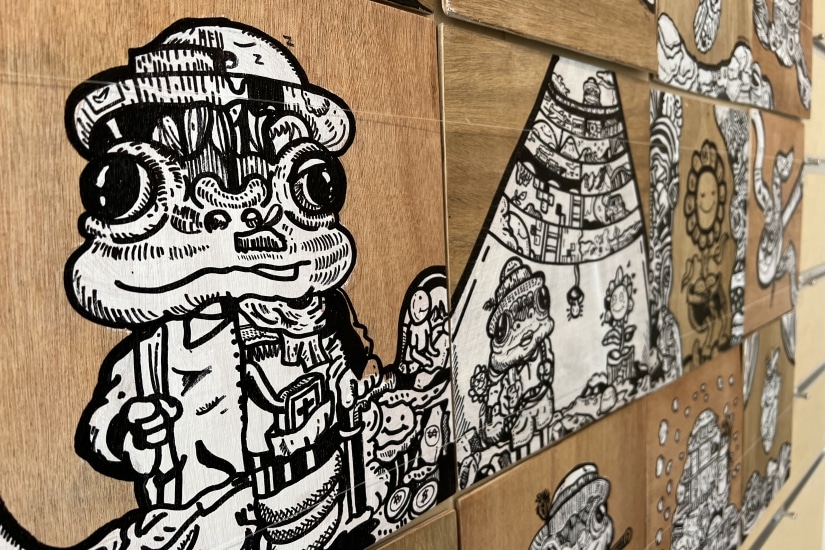 現場作品將由即日起展出至 1 月 31 日,每張手繪木板畫皆是獨一無二,更有各款印上藝術家標誌性塗鴉風的紀念品發售,喜歡塗蛙的你不要錯過!
