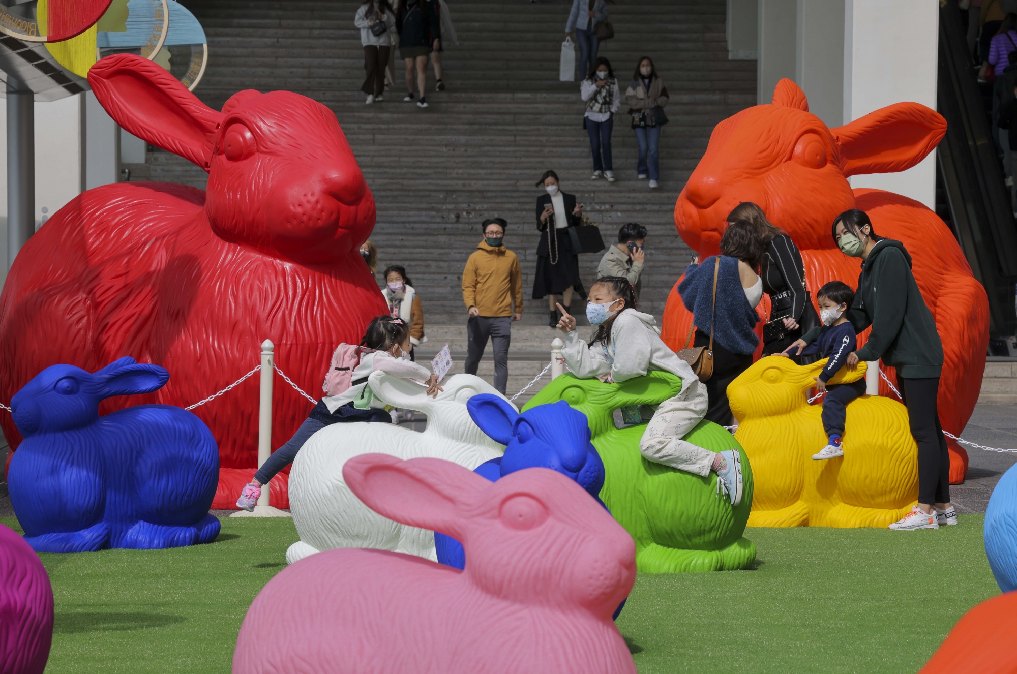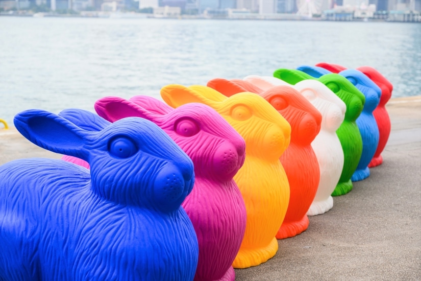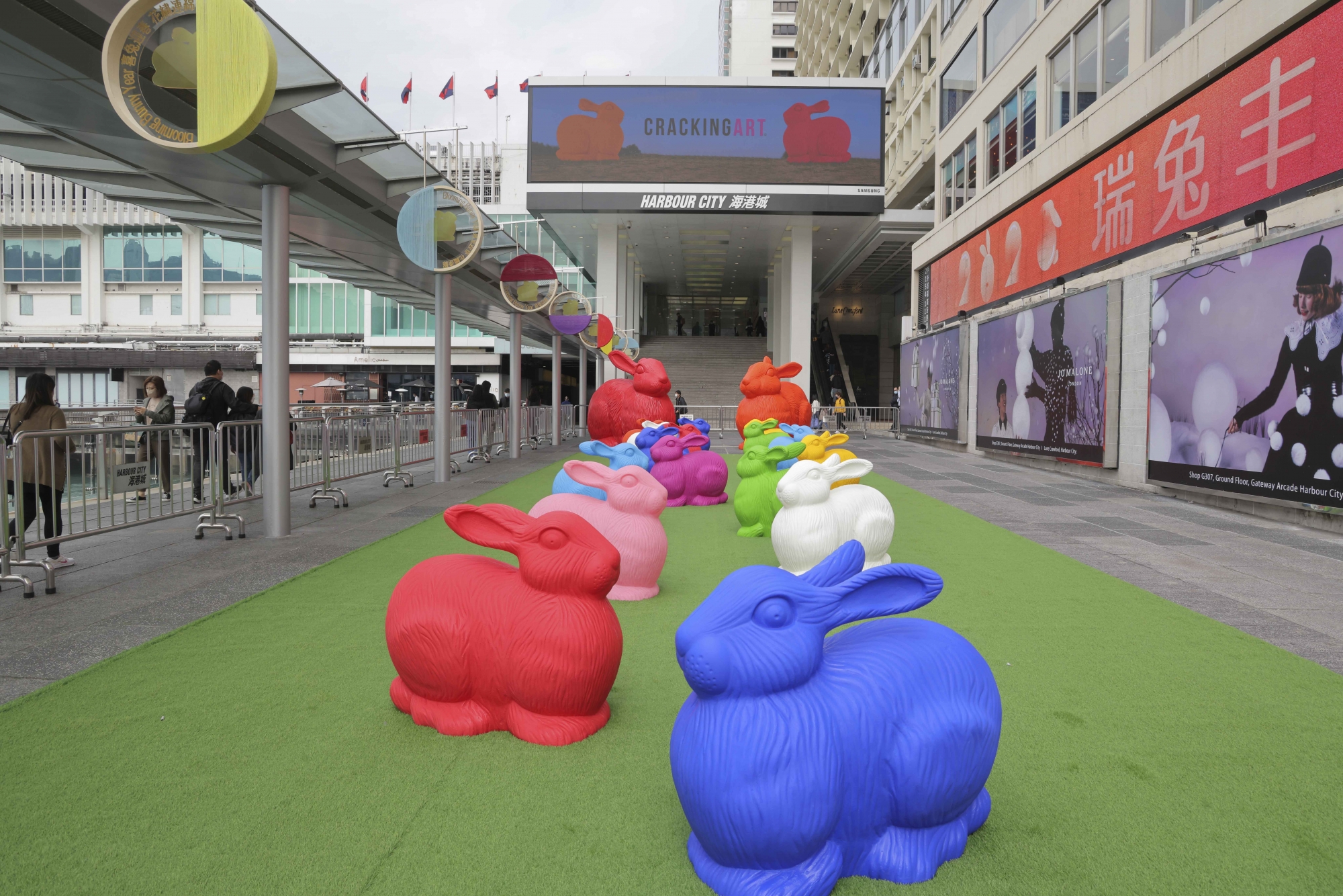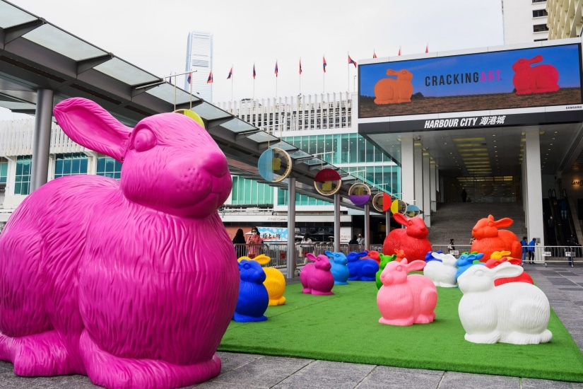 難得 Cracking Art 首次踏足香港,19 隻巨型可愛兔子已經率先來到海運大廈露天廣場跟大家喜迎兔年。有別於一般藝術裝置,藝術家鼓勵大家觸碰作品,甚至騎上兔子,拍下有趣照片。