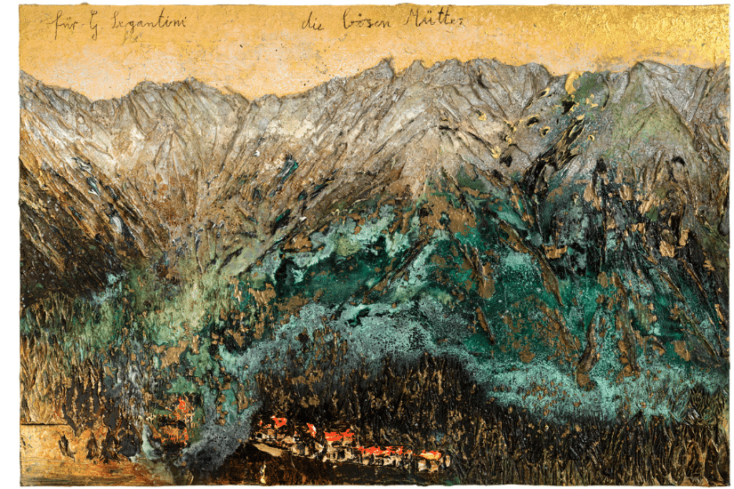 畫展將展出 Kiefer 系列作品《萬溶劑》和《致塞岡蒂尼》,兩者均描繪山脈意象;這個反復出現的主題,可解讀為烏托邦理想的隱喻。與 Kiefer 大部分作品類同,上述二作的靈感均來自他最喜歡的詩人和詩句,以及各地不同文化的神話和傳說。