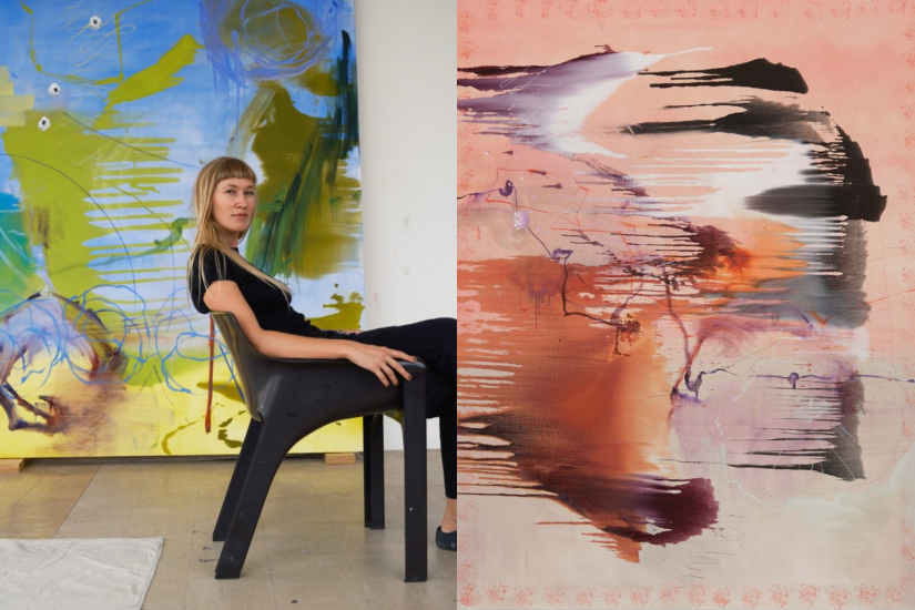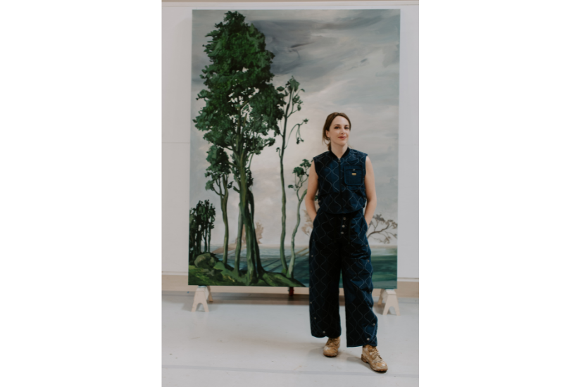 麥金泰爾(Emma McIntyre)以其色彩斑斕、筆觸靈動的生動抽象畫作而著稱。她巧妙地融合了油彩與氧化鐵等非傳統材料,憑藉本能而深邃的思考,探索繪畫媒介如煉金術般的可能性,拓展人們對風景和自然世界的傳統認知邊界。在繪畫時,麥金泰爾從一開始就引入偶然性的元素,她首先從上方傾倒顏料,任由色彩在匯聚成水窪、飛濺、瀰漫於畫布之上。隨後,她再用層疊的、本能而充滿氛圍感的筆觸漸次構建出畫面的表層。