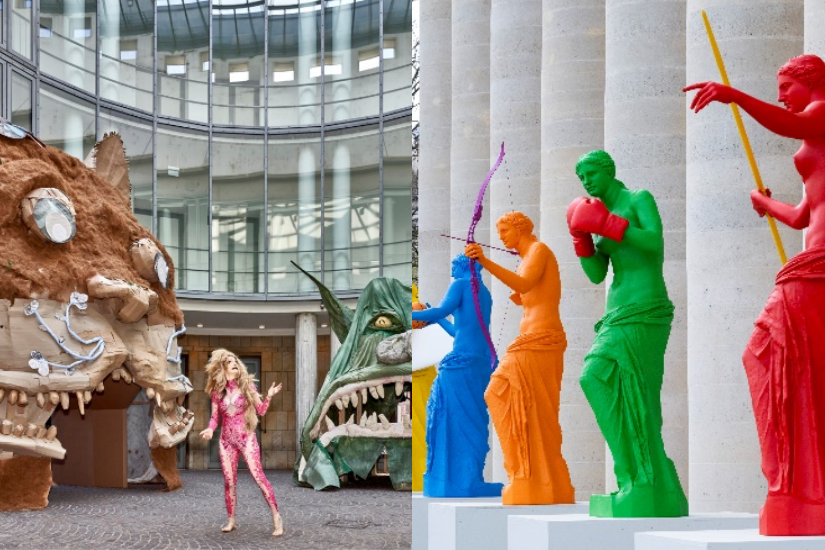 「Lanternfly Ballet」 以香港本地昆蟲「長鼻蠟蟬」為主角,結合拼貼畫風格的睡蓮葉雕塑與現場舞蹈表演,展現香港生物多樣性的奇幻魅力。而 「Beauty and Gesture」 系列則以古希臘雕塑「斷臂維納斯」為靈感,融合奧運運動器材元素,將古典與當代藝術完美結合,首度亮相香港星街小區。