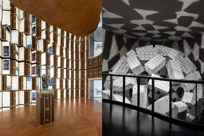 Louis Vuitton透過由LVMH集團贊助打造的法國館,向匠心工藝和日本寫下兩份愛的宣言。由日本建築師重松象平(OMA)設計的沉浸式展館以羅丹的雕塑《大教堂》為核心,展廳內擺放85個衣櫃行李箱,每個行李箱也是卓越工藝的典範,向Louis Vuitton的精湛手製工藝致敬。展覽亦與法國龐畢度中心IRCAM音樂研究所合作,創作原創配樂,重新演繹工坊內的各種聲響。
