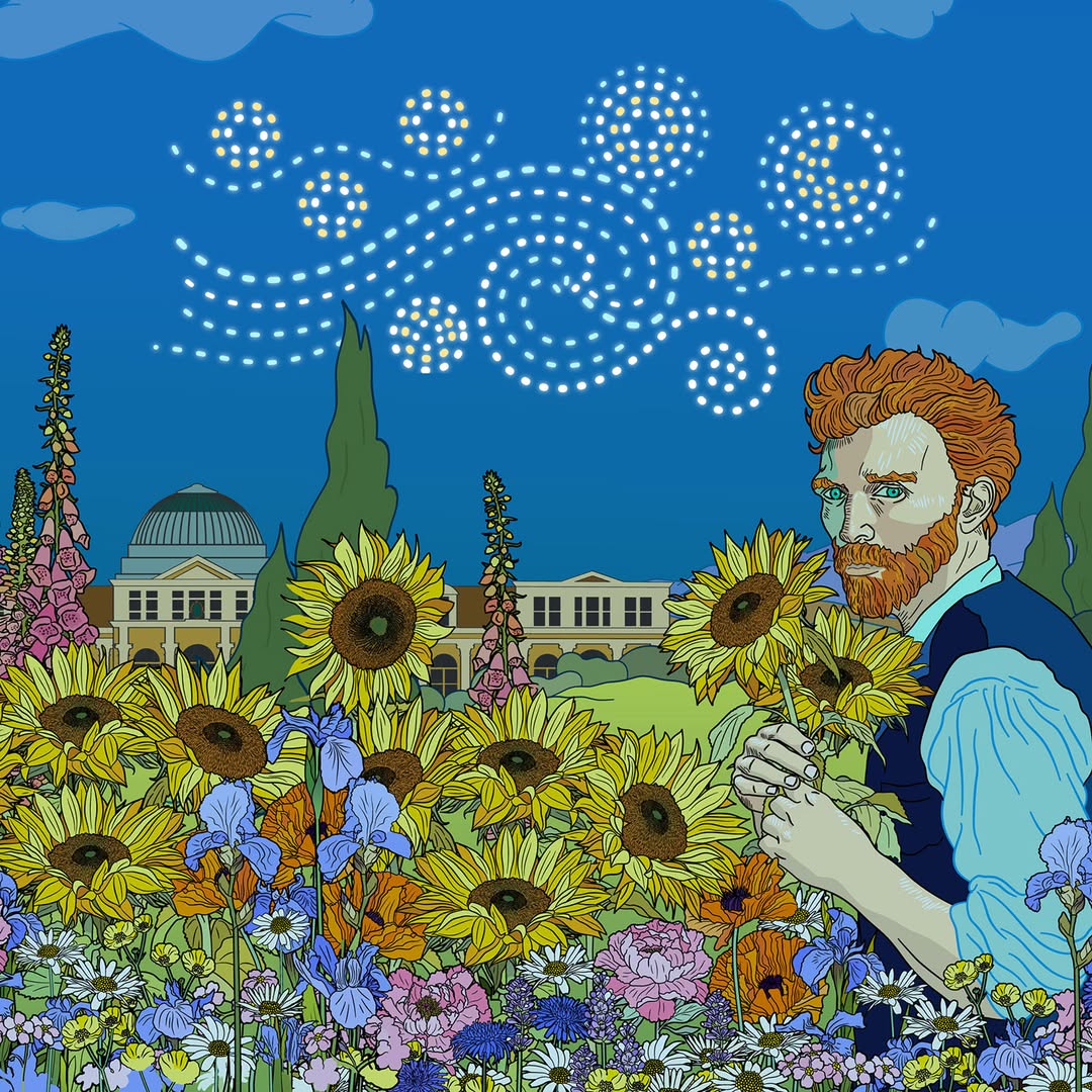 他們將梵高筆下花卉搬進現實,重新詮釋強調這些花朵的紋理、深度、生命力,邀請觀眾從全新的角度欣賞梵谷作品的美麗與情感。除了引人入勝的互動體驗外,還特別推出了名為「星夜」的夜間活動,以無人機燈光秀重現梵高筆下的璀璨夜空,並配以現場爵士樂演出及餐飲體驗。遊客將有機會在戶外寫生、參與創意工作坊,親身感受這場前所未有的藝術與自然跨界體驗。