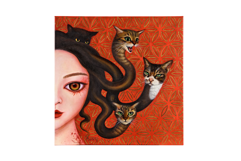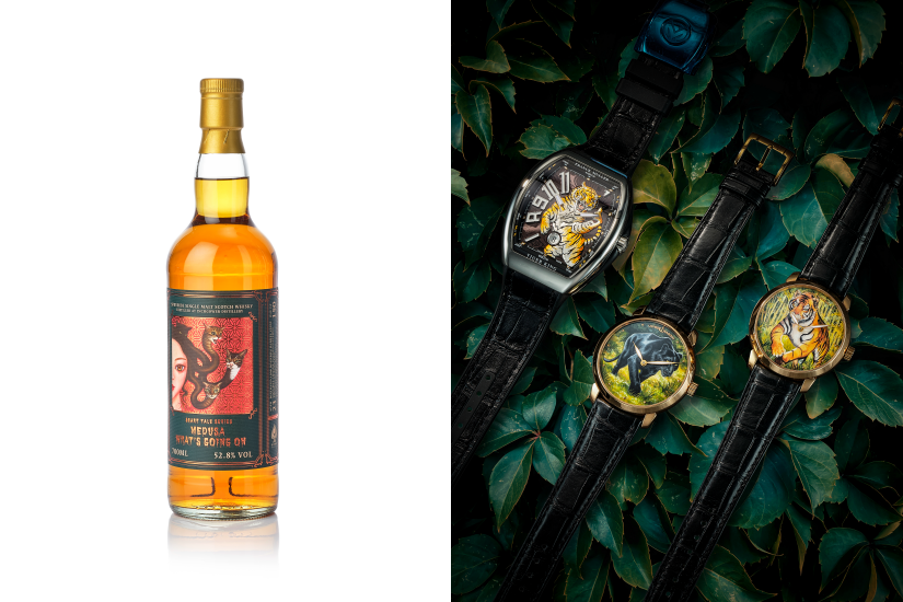 而除繪畫和雕塑外,展覽還涵蓋珠寶、腕錶、酒標設計等跨界作品,如雅典獨特的「TIGER」自動上弦腕錶、Katy Ku 設計的《Medusa – What’s Going On》酒標威士忌,以及愛馬仕特別訂製的迷你凱莉包等,進一步模糊了藝術與商品、象徵與實用的界限。