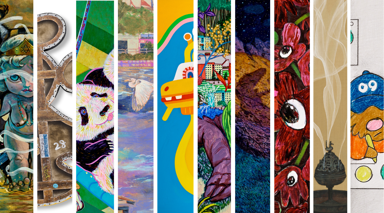 石家豪巧妙地將披頭四的形象與中國傳統元素結合,黃龍舢舨上的四位樂隊成員以古典姿態演繹着現代傳奇,不僅是對西方流行文化的致敬,更是對香港作為東西方文化交匯處的深刻隱喻。畫作色彩明亮而夢幻,彷彿邀請觀眾跟隨這艘「黃色潛水艇」,航行於記憶與幻想交織的海域。