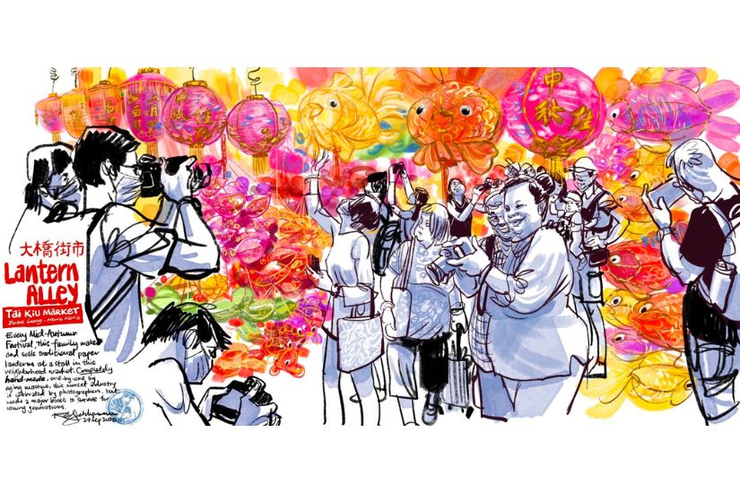 在這個步伐匆忙的都市,Rob Sketcherman 提醒我們放慢腳步,去細味和感受周圍的生活細節:「在狹窄的小巷和擁擠的街角,我的感官隨著身邊周圍的故事、聲音和景象的浸沉而敏銳起來。」