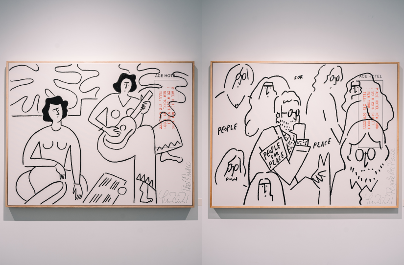 長場雄貫徹以往黑白二元的簡約風格,為本次展覽全新創作出 24 幅帆布油畫 ,向一眾藝術名畫、經典電影,以及美國著名服裝品牌 American Apparel 致敬!
