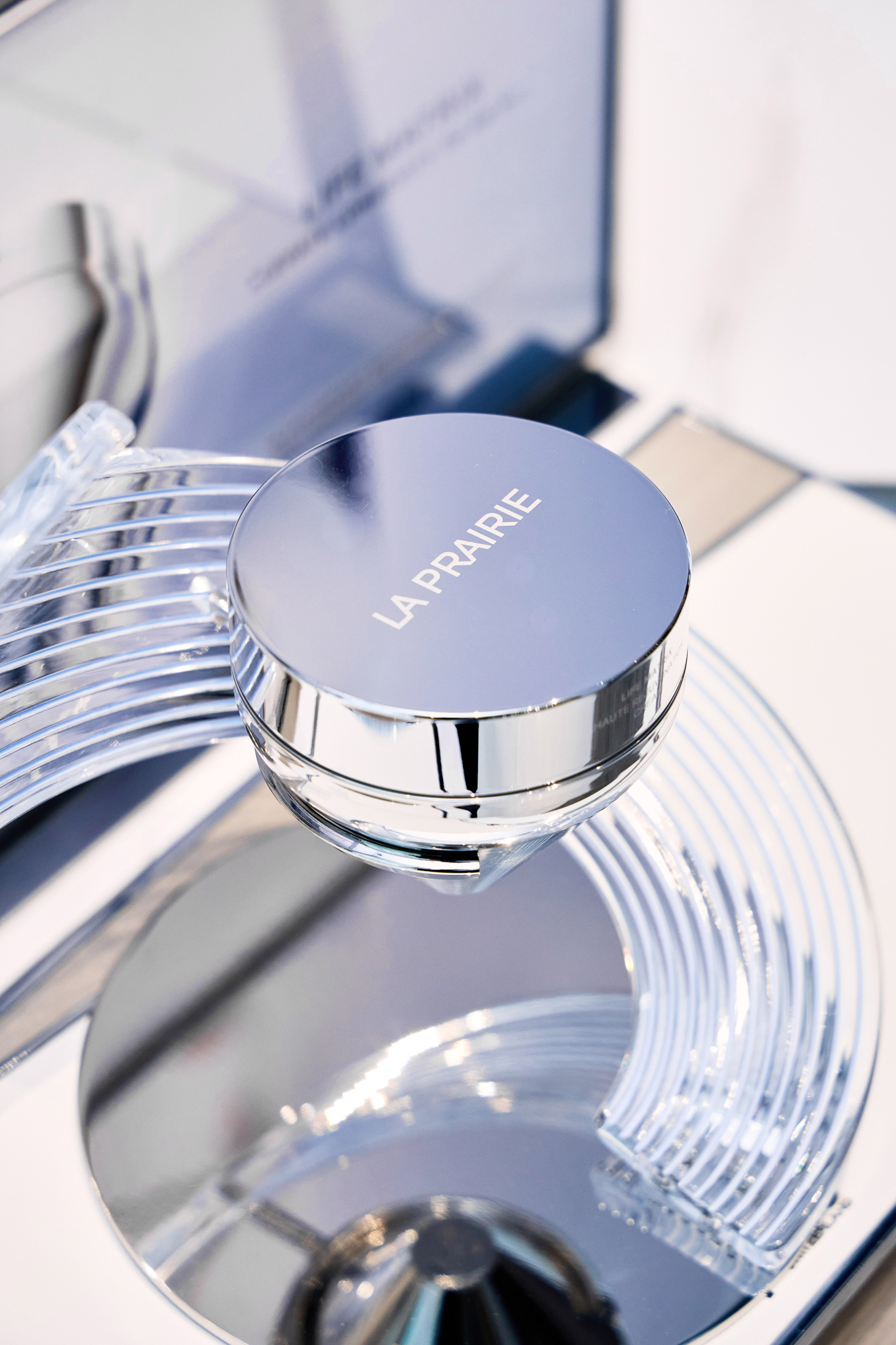 Life Matrix 面霜亦以充滿未來感的俐落包裝,將經典護膚設計昇華為藝術品,以簡約線條瓶身襯托出面霜的臻極功效。平滑的鏡面經過鑽石拋光加上專業塗層處理,確保製成品呈現完美狀態。包裝還附有一支與這款奢華瓶身包裝同樣簡約俐落風格的專屬按摩棒,瓶身符合 La Prairie 全新環保設計準則,由鋁製成,在全球大多數回收流程中可循環回收。