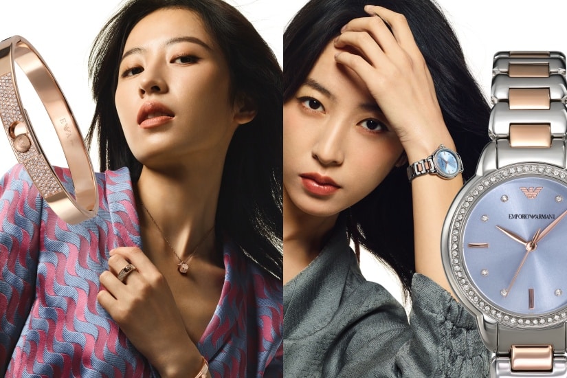 Emporio Armani 新一季廣告大片,通過姿態和表情強調動感與活力的理念。周雨彤擺出各種姿勢,並與自己的微縮模型互動,其比例和尺度的反轉令人驚歎。品牌2024春夏季腕錶和首飾系列活力充沛;Key Lady腕錶擷取藍色調重釋品牌經典風格,為春夏季注入一抹清涼。