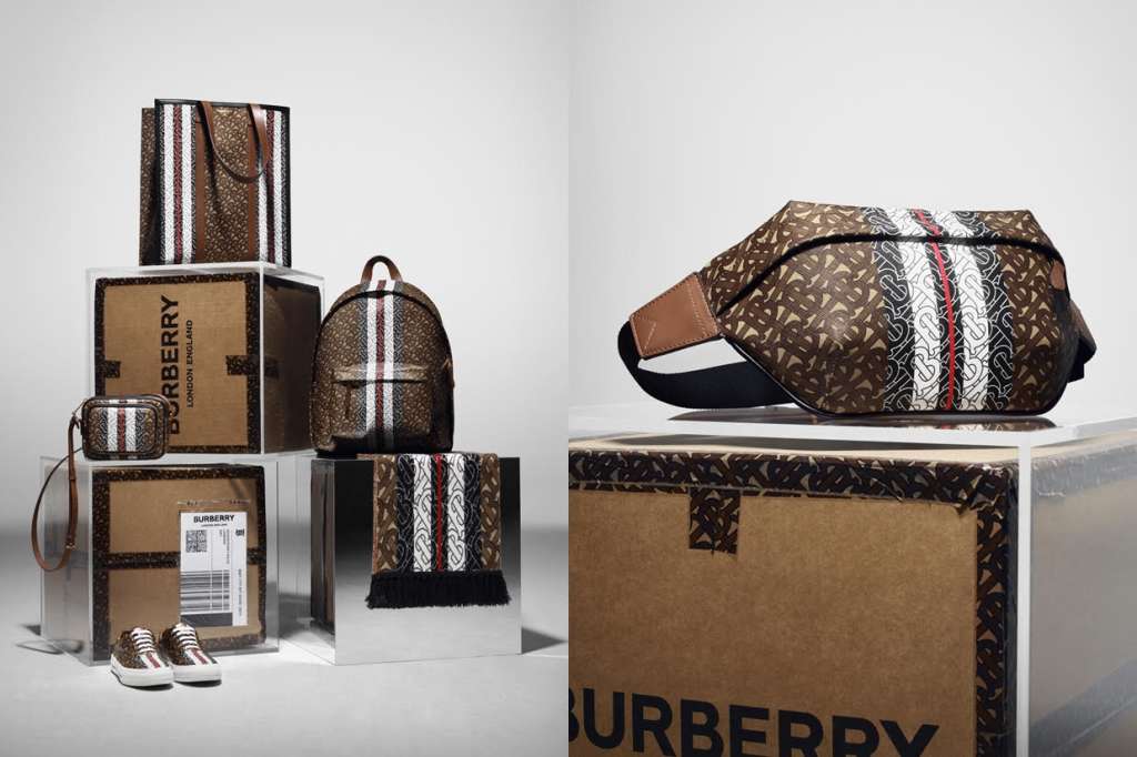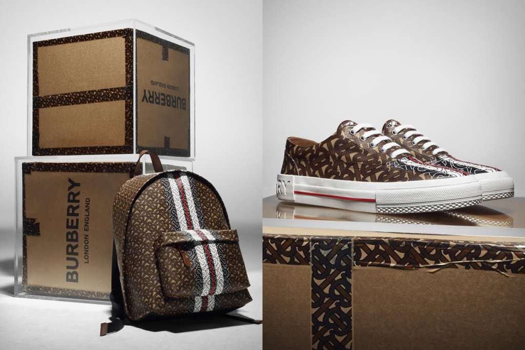 Riccardo 與英國著名藝術總監暨平面設計師 Peter Saville 攜手創作出是次的 Monogram 系列,從品牌典藏資料二十世紀的 Thomas Burberry logo 圖案取靈感。系列中運用了品牌標誌的米色與棕色的互連TB字母縮寫圖案,作為全新品牌設計密碼。