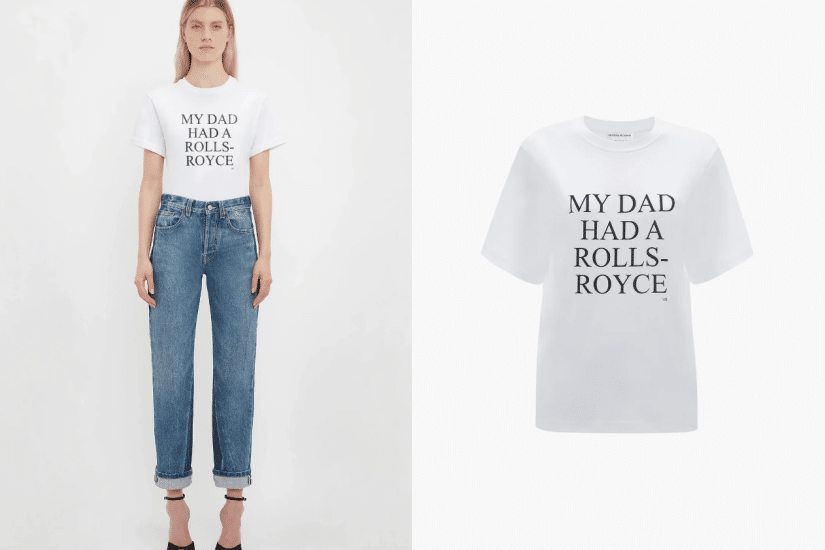這段對話在各社交平台上被瘋傳,連沒看過紀錄片的觀眾,也知道這對話片段。就在剛剛的17 號,Victoria Beckham 在 IG 貼出一張自拍照並身穿著「My dad had a Rolls-Royce」的標句白 Tee,標語下方標示著小小的 VB 縮寫,就是她個人時尚品牌推出的新品,定價為 150 美金,重點是白 Tee 於一天之內便搶購一空,意味大家對於 Victoria Beckham 這次的自嘲相當受落,忍不住乖乖掏出錢包,亦令她再度成為話題!