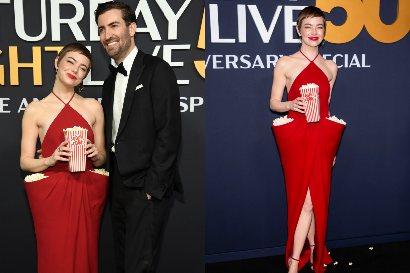 觀賞具娛樂性的電視綜藝節目,當然要邊看、邊吃著零食,才夠輕鬆愉快。女星 Emma Stone 為了呼應《Saturday Night Live 週六夜現場》開播多年以來帶給大家的歡笑聲,就帶來了最佳示範,以一身「爆谷裝」亮相節目的 50 週年派對,搶鏡又充滿幽默感,成為紅地毯上的亮眼焦點。