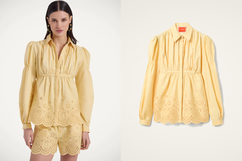 La Double J Franca ShirtEclipse Light Yellow in Embroidered Sangallo $6,600