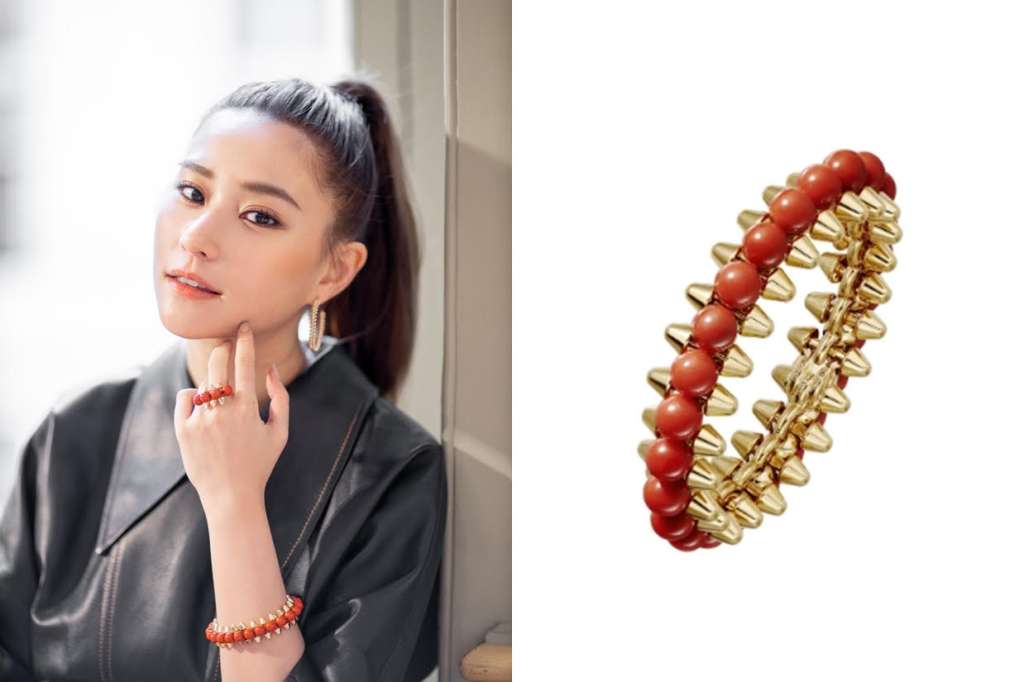 何超蓮先以高貴優雅的晚裝造型搭配 Clash de Cartier 系列珠寶,散發溫柔嫵媚的氣質;之後再以型格帥氣的時尚皮革造型現身, Clash de Cartier 的珠寶令叛逆壞女孩的感覺更有所提升。