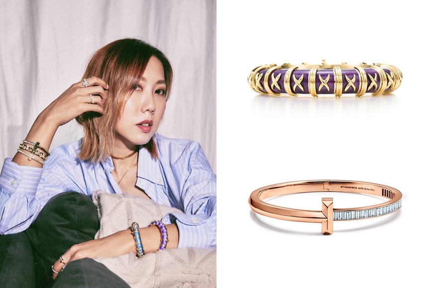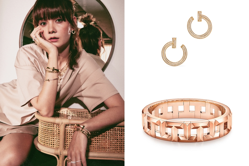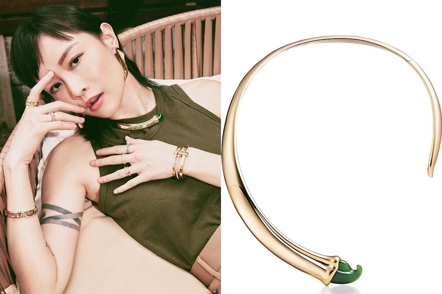 手上則配襯 Tiffany Elsa Peretti®系列手鐲及 Tiffany T1 指環,整體配搭既具個性,亦充滿時尚氣息,正好與她的年輕新星形象配合。