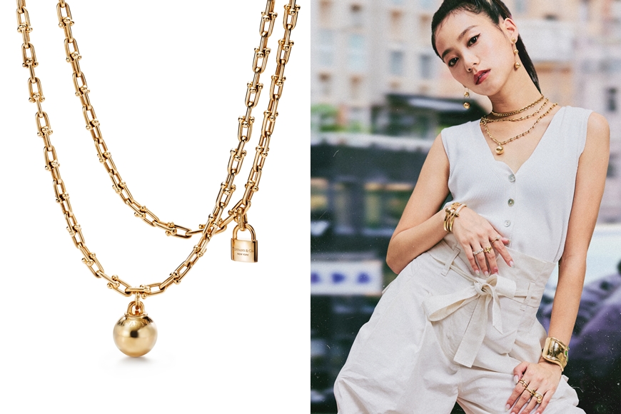 至於 Jace Chan(陳凱詠)則以 T True 手鏈作為頸圈疊戴,再配以 HardWear 18K 金環頸鏈,營造層次。