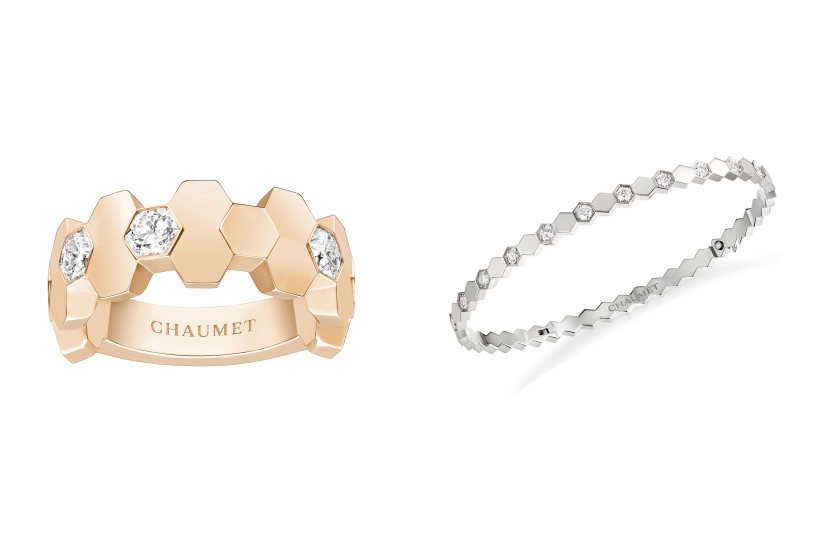 Chaumet 標誌性的 Bee My Love 系列以象徵勤勞與拿破崙王權的六邊形蜂巢圖案為設計,輕盈靈動,佩戴者可以透過創意,疊戴配搭出千變萬化的組合,增加時髦趣味,難怪一直都是品牌的人氣系列。