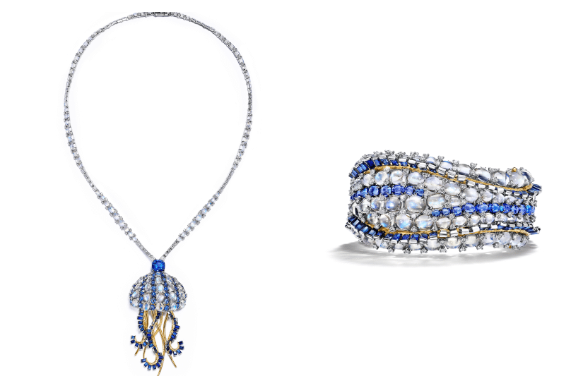 備受矚目的 Tiffany & Co. 年度 Blue Book 高級珠寶系列,今年以「Out of the Blue」命名,作品以傳奇設計師 Jean Schlumberger 對海洋珍寶的奇思妙想為靈感,透過刻畫抽象的幾何美學,把神秘的海洋帶到閃爍萬分的珠寶世界。