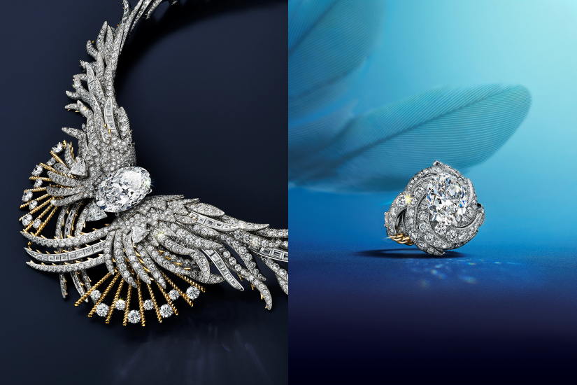 Wings 主題象徵飛翔與幻想,為設計師標誌性的翅膀輪廓鑲嵌上鑽石及藍寶石,渲染成流光溢彩的故事。Ray of Light 章節取材自仿如太陽萬丈光芒般的典藏 Jean Schlumberger by Tiffany 胸針,新設計以紅色尖晶石細膩表達難以捕捉的光束。Ray of Light 中最別出心裁的項鏈設計極其獨特,可轉化成闊別 Tiffany Blue Book系列多年的冠冕款式。
