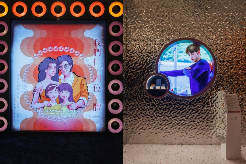 展覽入口設置了一個極具年代感的百子櫃,彷如帶領參觀者穿越回到品牌成立之初的年代,讓大家可以盡情打卡拍照,展開一段摩登與懷舊並存的珠寶故事旅程。每個展區都結合視覺、聽覺及觸覺,通過多重感官來呈現珠寶背後的動人故事。