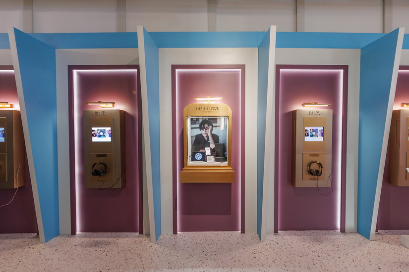 另一邊的「情感絮語」專區,觀眾可戴上 Bang & Olufsen 的耳機,沉浸於多位名人包括陳柏宇、林宥嘉等分享的愛情故事中,從不同角度感受愛的細膩情感。