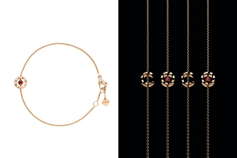 此外,這次也是 Coco Chanel 系列首次以黃金配搭濃艷紅寶石,包括項鍊、手鍊設計,炫麗的紅寶石在 C 字形空心吊墜或手鍊的 O 字形中央閃爍 ; 經典細節與鮮紅擦出美妙視覺火花。