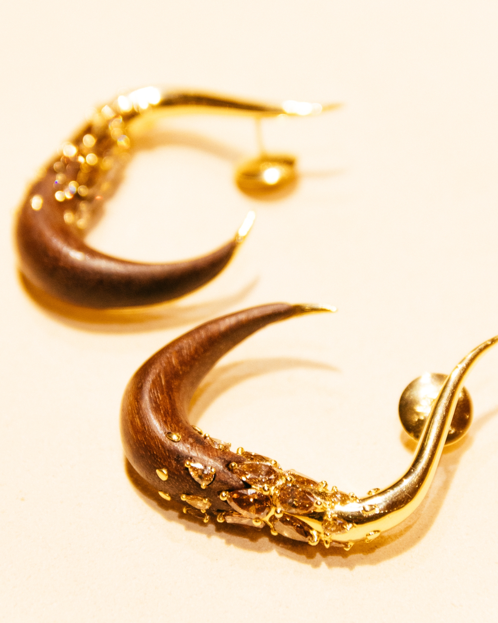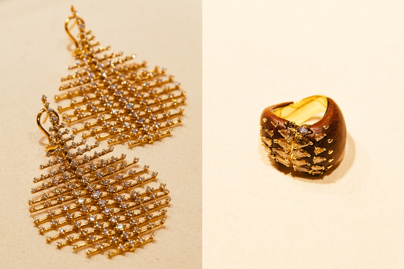 F:每個系列中都有一些令我特別自豪的作品。Fluid Chandelier 耳環、Electric Bolt 耳環、和今次最新的木系列,這些富有挑戰性的想法被成功轉化成珠寶作品,並定義了我的作品。