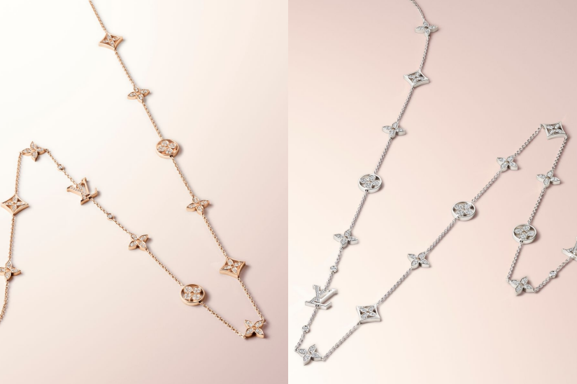 Idylle Blossom 珠寶系列共帶來了六款精緻新作,將標誌性的 Monogram 花卉圖案巧妙融合,令人眼前一亮。此系列的設計靈感來自 1896 年喬治威登的經典圖案,如今,它以嶄新的面貌重現於珠寶世界。從窄長到圓形,各種形狀的項鍊、手鍊和戒指,在今年的設計中盡顯風采。兩條鑲鑽長項鍊,採用玫瑰金或白金製造,優雅中不失時尚,為日常和特別場合增添了不一樣的風采。