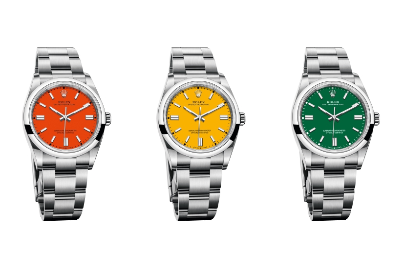 有別於上述的幾款人氣作,不少錶迷均以「入門款」統稱 Oyster Perpetual 的各款式,但就個人而言,「入門款」好像失去了這款腕錶的地位,畢竟它已經是一枚有著接近100年歷史的標誌性勞力士;因此,個人習慣稱它為 dress-watch。今年,Rolex 可謂將 Oyster Perpetual 的 dress-watch 風格推向極致,同一時間帶來了五個錶面配色的選擇,不單讓喜愛配襯服飾穿搭的錶迷享受更多選擇,而且色調方面更同時兼顧了男、女配戴者。